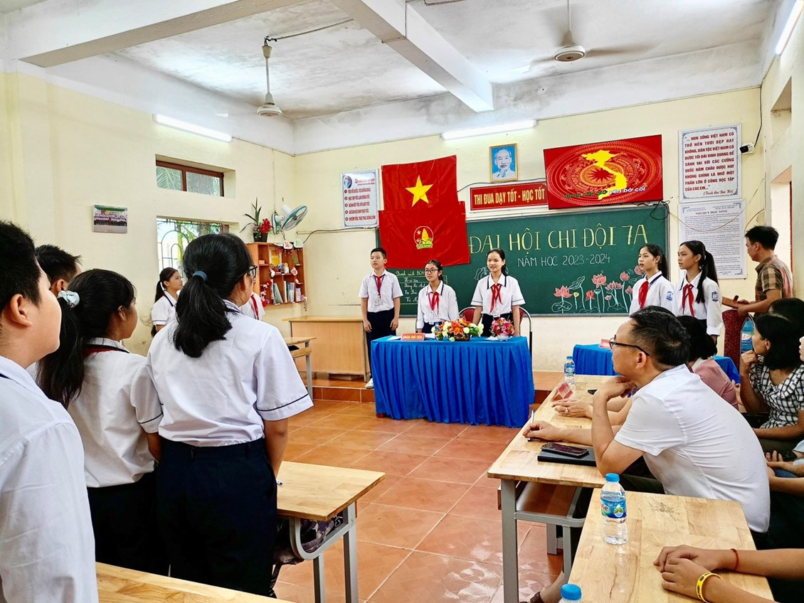 Thực hiện chương trình công tác Đội và phong trào thiếu nhi năm học 2023-2024, thực hiện chỉ đạo của Liên đội Trường THCS Quốc Tuấn, 7h00 ngày 18/9/2023, chi đội 7A của cô giáo Ninh Thị Sen tổ chức thành công Đại hội chi đội mẫu Nhiệm kì 2023-2024, làm cơ sở định hướng để các chi đội khác trong Liên đội tổ chức Đại hội chi đội lớp mình.