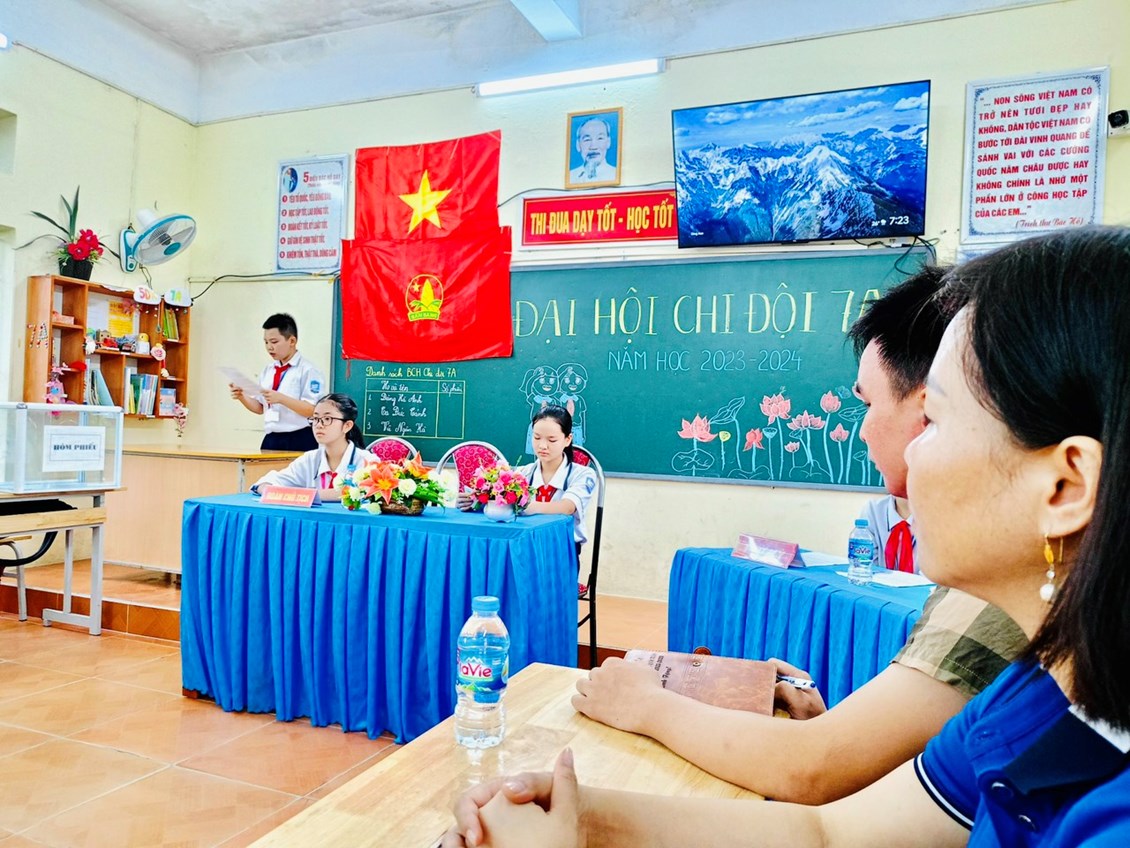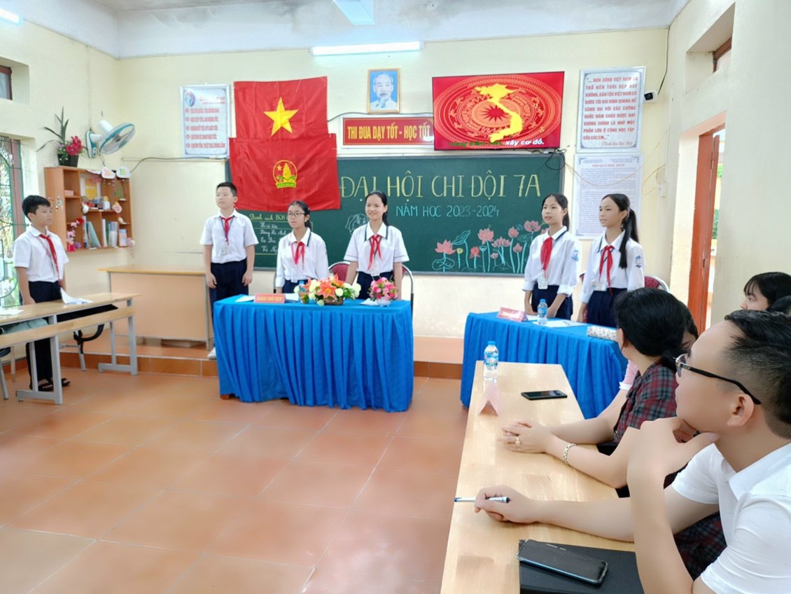 Đến dự với Đại hội có cô giáo Bùi Thị Minh Nguyệt – Bí thư chi bộ, Hiệu trưởng nhà trường; thầy giáo Nguyễn Công Hiệp - Phó Bí thư chi bộ, Phó Hiệu trưởng nhà trường; thầy Nguyễn Đình Trưởng - Giáo viên Tổng phụ trách đội cùng các thầy, các cô giáo chủ nhiệm các lớp khối 6-7-8-9, các đội viên tiêu biểu của các chi đội và đặc biệt là các bạn đội viên chi đội 7A.Trong năm học vừa qua, Chi đội 7A đã đạt được nhiều thành tích học tập cũng như các hoạt động ngoại khóa. Đồng thời thông qua Đại hội chi đội đề ra mục tiêu cho năm học mới, bầu ra Ban chỉ huy chi đội nhiệm kì tới. Đại hội đã bầu ra BCH chi đội mới, hứa hẹn một năm học mới gặt hái được thật nhiều kết quả tốt đẹp.