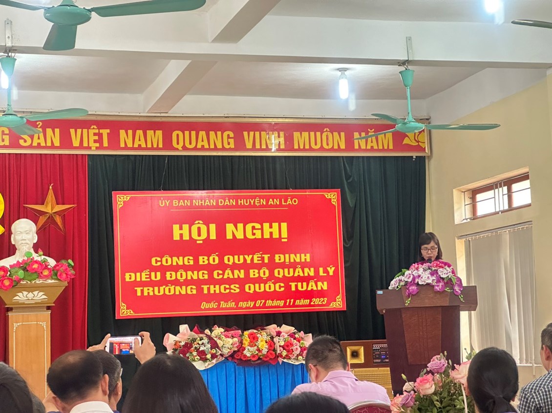 Chiều ngày 07/11/2023, tại trường THCS Quốc Tuấn, UBND huyện An Lão đã tổ chức Hội nghị công bố quyết định điều động CBQL trường THCS.