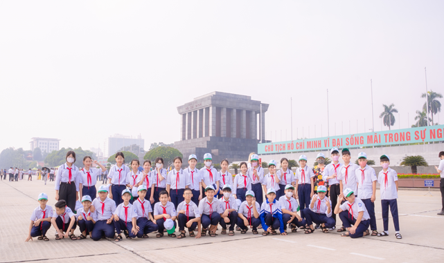 Ngay từ 6h30 phút sáng ngày 02/11/2023, học sinh, phụ huynh và cán bộ giáo viên, nhân viên nhà trường đã tập trung đông đủ tại sân trường để chuẩn bị khởi hành. Những gương mặt đầy hào hức đã sẵn sàng bắt đầu cuộc hành trình học tập trải nghiệm thú vị tại Hà Nội, 9h05 đoàn trải nghiệm trường THCS Quốc Tuấn đã có mặt tại quần thể di tích Lăng Bác.