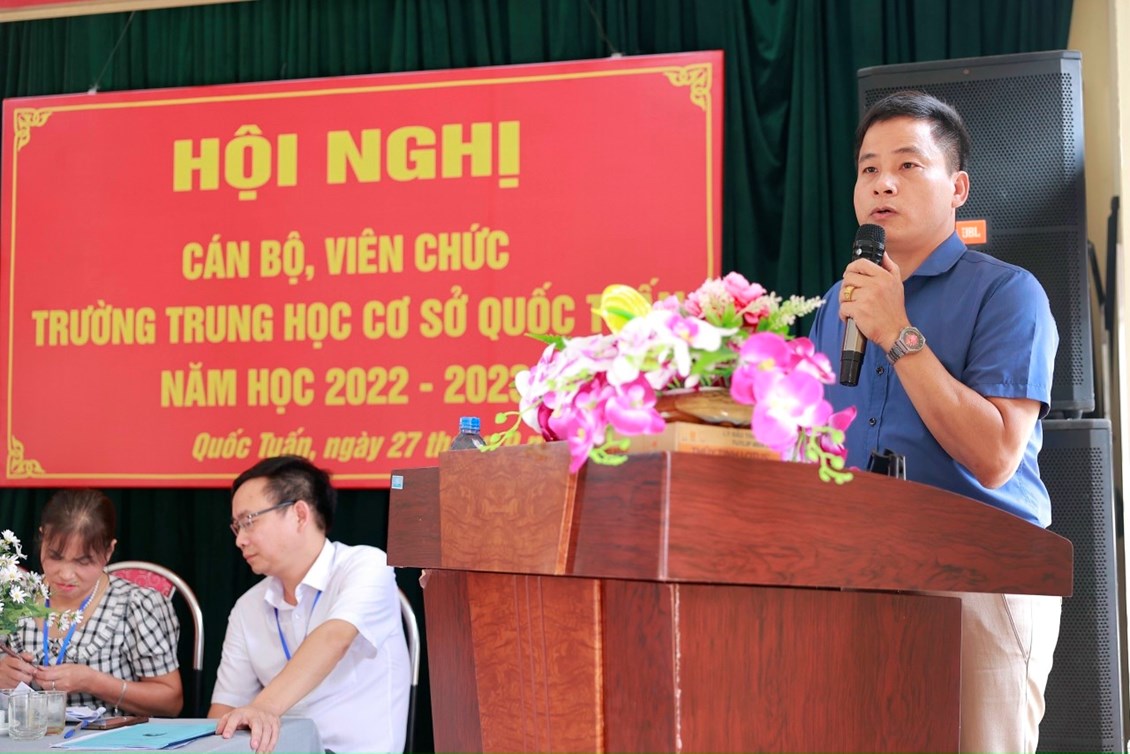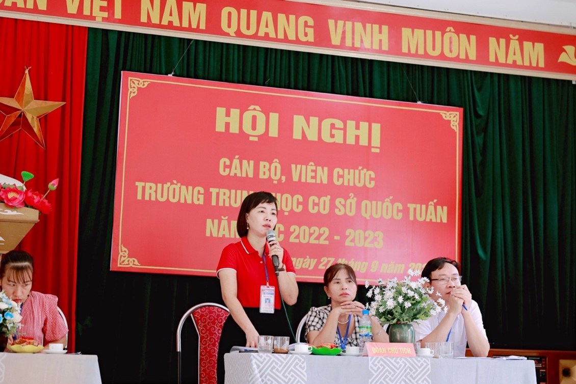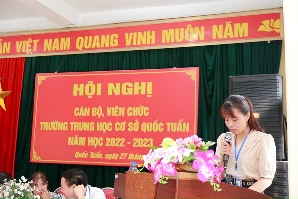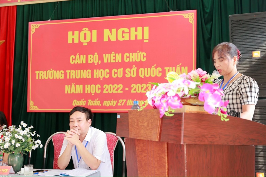 Hội nghị cán bộ, viên chức trường THCS Quốc Tuấn được tổ chức vào sáng ngày 27/9/2022. Về dự và chỉ đạo hội nghị có các đồng chí lãnh đạo, chuyên viên Liên đoàn lao động huyện, Ban dân vận, Phòng Giáo dục và Đào tạo huyện An Lão; các đồng chí đại diện chính quyền địa phương xã Quốc Tuấn; Ban đại diện cha mẹ học sinh trường. Hội nghị đã kêu gọi toàn thể CB, VC cơ quan tăng cường đoàn kết trên cơ sở thực hiện tốt Quy chế dân chủ cơ sở; phát huy sức mạnh, trí tuệ tập thể, tích cực hưởng ứng phong trào thi đua do Thủ trưởng cơ quan và BCH công đoàn phát động, phấn đấu hoàn thành thắng lợi các nhiệm vụ, chỉ tiêu do Hội nghị đã đề ra.